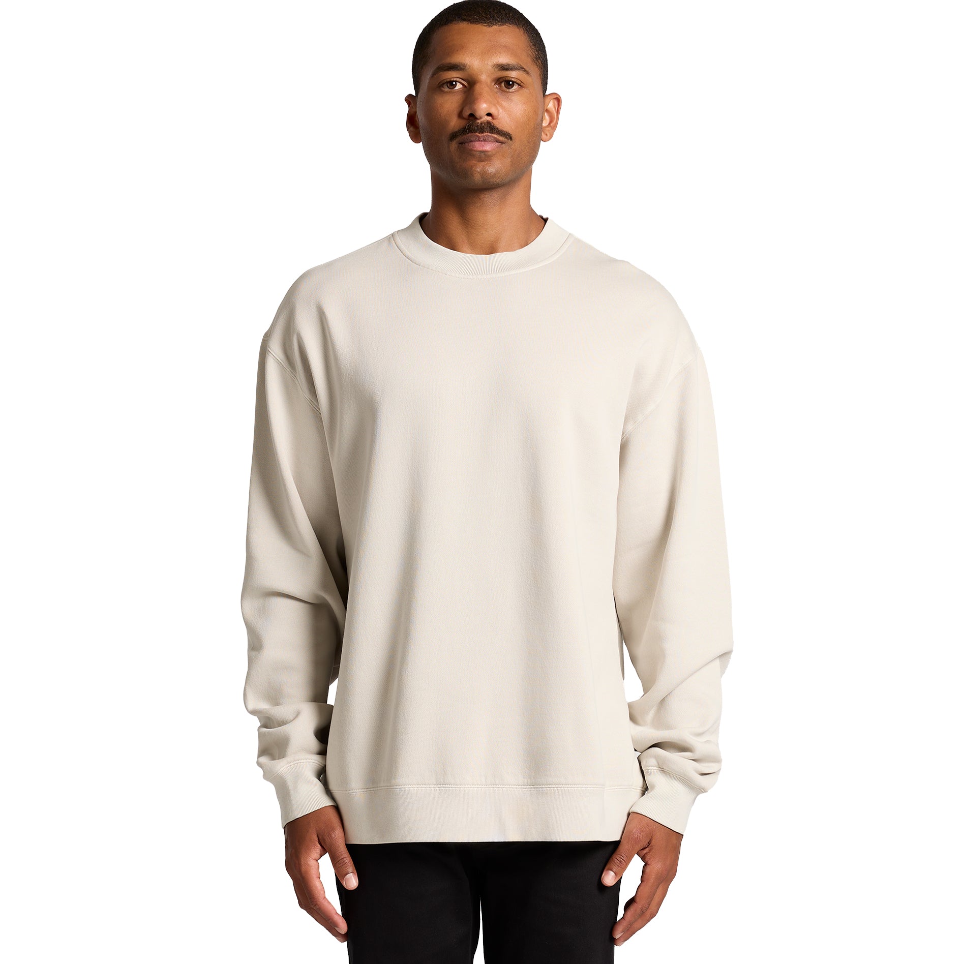 VNTG Relax Faded Crew, offering a relaxed fit in mid weight 9.4 oz fleece. Features include a drop shoulder and garment dyed finish. Complete with sleeve cuff ribbing. Model is 5'10" wearing a large.