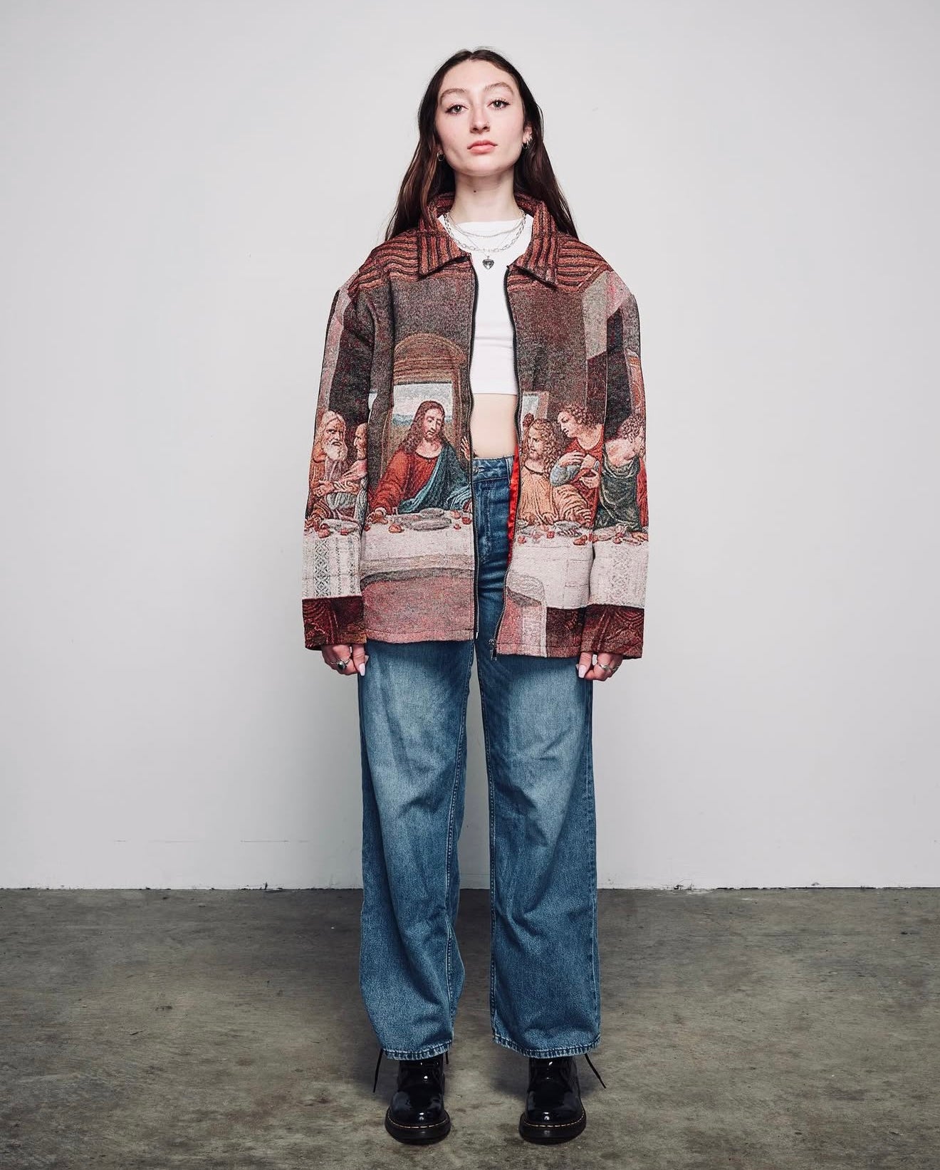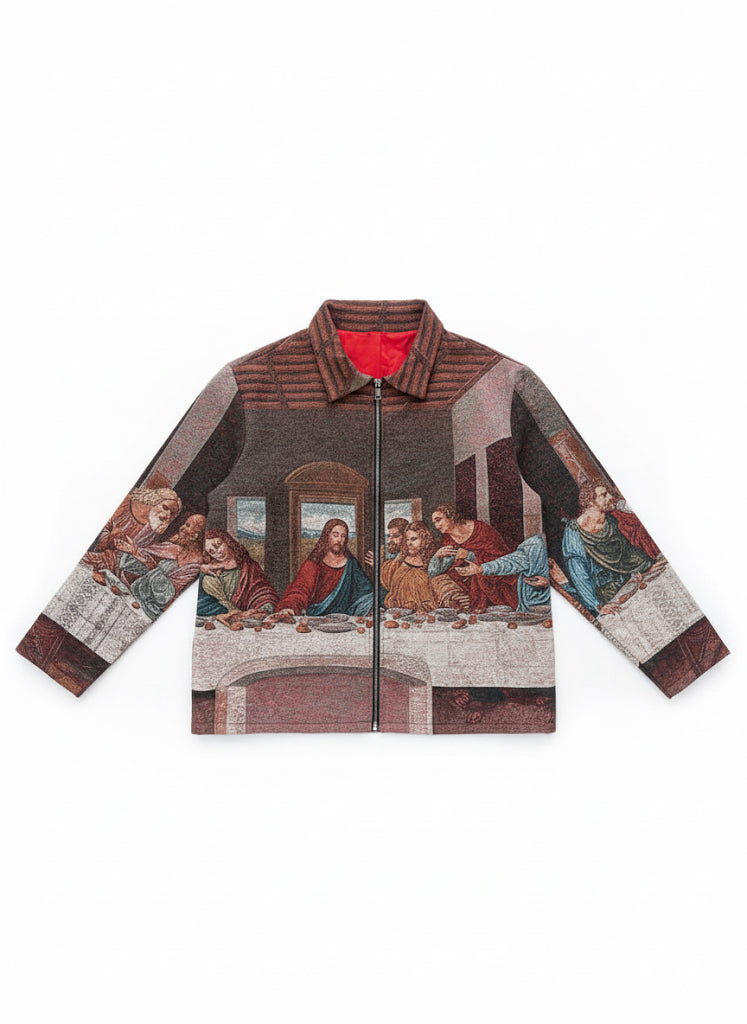 Bringing back a classic by popular demand! The "Judas at your Table" tapestry jacket is returning for a limited run. Don't miss your chance to own this wearable art.
